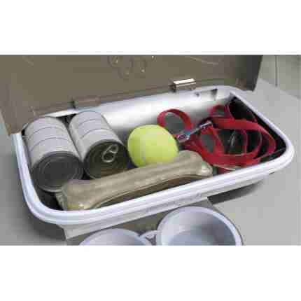 Verhoogde hondenvoerbak muur Bama Pet – Dubbel met opbergvak – Taupe 48x27x42 cm