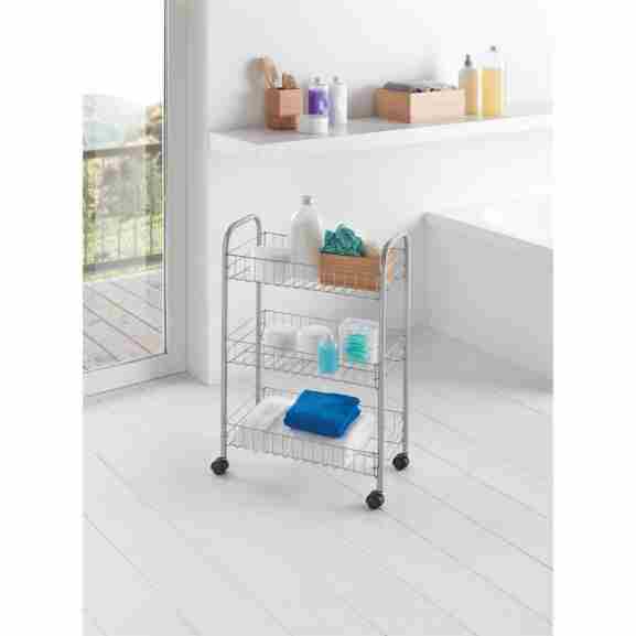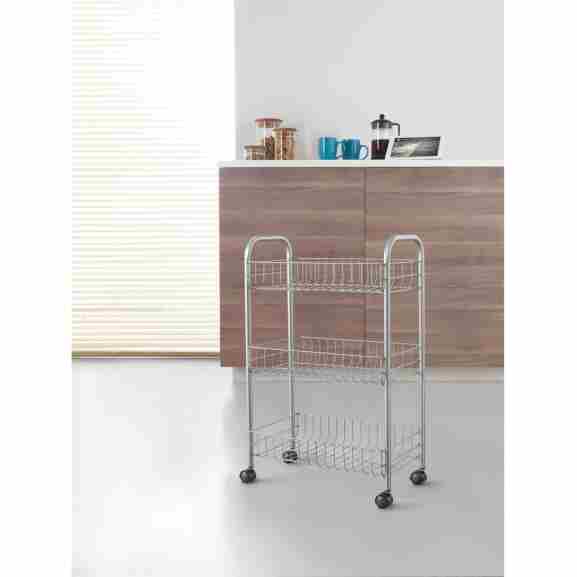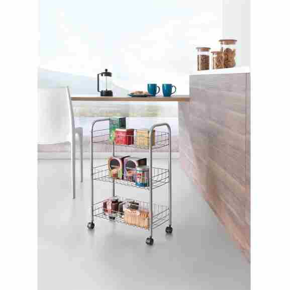 Metaltex opbergtrolley Lugano met 3 manden. Handig voor in de keuken of badkamer. De opbergtrolley is eenvoudig te verplaatsen door de wieltjes.