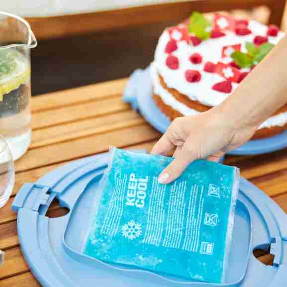Als je vaak zelf bakt, ken je het probleem: het zijn niet alleen feestgasten die bezweet raken door de hoge zomertemperaturen. Zelfs delicate room of slagroomtaarten kunnen letterlijk smelten in de zinderende hitte. Met behulp van de COOL & FRESH taartkoepel kunt u uw lieve kunstwerken op elk moment van het jaar veilig op reis sturen – daarvoor zorgt het geïntegreerde koelkussen. Wanneer hij wordt verwijderd, verandert de koelbox in een gewone taartbutler waarmee je bakwaren veilig en gemakkelijk kunt vervoeren – een praktische oplossing als je een verjaardagstaart voor je schoonmoeder bakt of taart meeneemt naar het barbecuefeest van een vriend. De goed afsluitbare hoes beschermt je zoete lekkernijen tegen uitdrogen. Maar het voorkomt ook dat de hond van je collega ongemerkt van de taart proeft of dat mieren smullen.