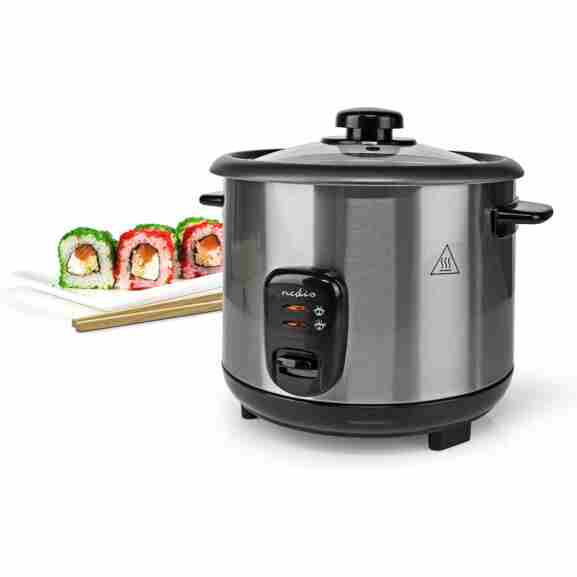 Met dezeNedis KARC115AL rijstkoker met roestvrijstalen behuizing van Nedis kun je in een mum van tijd de lekkerste rijst koken. Je hoeft je geen zorgen meer te maken over het te lang koken van de rijst, omdat de rijstkoer automatisch overschakelt op de warmhoudfunctie zodra de rijst is gekookt. De rijstkoker heeft een capaciteit van 1,5 liter en een vermogen van 500 Watt, waarmee je maximaal 5 porties rijst tegelijk kunt bereiden. Dit maakt de rijstkoker uitermate geschikt voor het bereiden van een diner voor het hele gezin. Natuurlijk kun je ook kleinere hoeveelheden rijst koken. De rijstkoker heeft een glazen deksel en een binnenpan met een antiaanbaklaag, zodat de rijst niet aan de pan blijft plakken. De binnenpan is uitneembaar, waardoor hij gemakkelijk kan worden schoongemaakt. De rijskoker wordt geleverd met een lepel en een maatbeker.