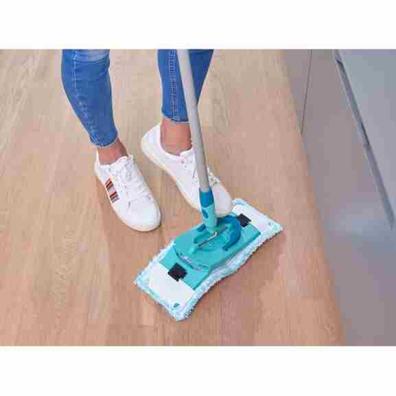 Wie het dweilsysteem Set Clean Twist System M Ergo van Leifheit bestelt krijgt een compleet systeem: een dweil, emmer met slingerzeef en de Micro Duo wisserovertrek. Wie deze dweil-set bestelt kan direct beginnen met het schoonmaken van de vloeren in huis. Het dweilsysteem Set Clean Twist System M Ergo is uitgerust met het Leifheit pompmechanisme, hierdoor kan het vocht in de wisserovertrek individueel naar wens worden aangepast. De Leifheit vloerwisser is door dit uitwringsysteem geschikt voor elk type vloer. Doordat het dweilsysteem met één hand kan worden bediend, zijn bukken en handen in vuil water verleden tijd. Met slechts één voetklik wordt het wisseruiteinde ontgrendeld. De in lengte verstelbare telescopische dweilstok (109 cm tot 140 cm) garandeert optimaal poetscomfort zonder de rug te belasten. Het dweilsysteem Set Clean Twist System M Ergo kan overal tussentijds stabiel worden neergezet. Het 360° flexibele scharnier maakt het mogelijk om vlak onder moeilijk bereikbare plaatsen en in golvende lijnen te dweilen. De rondom bedekkende twee-vezel-wisserhoes reinigt daarnaast hoeken en randen direct mee. Deze Leifheit dweil bestaat uit licht verhoogde haren en microvezels die vuil verwijderen en water absorberen. De emmer is voorzien van een comfortabele draaggreep met steelhouder en een schenktuit voor schoon legen.