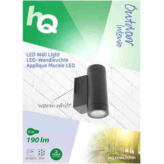 Hq Hqledwlout01 Led Wandlamp Voor Buiten 6 W 190 Lm Zwart