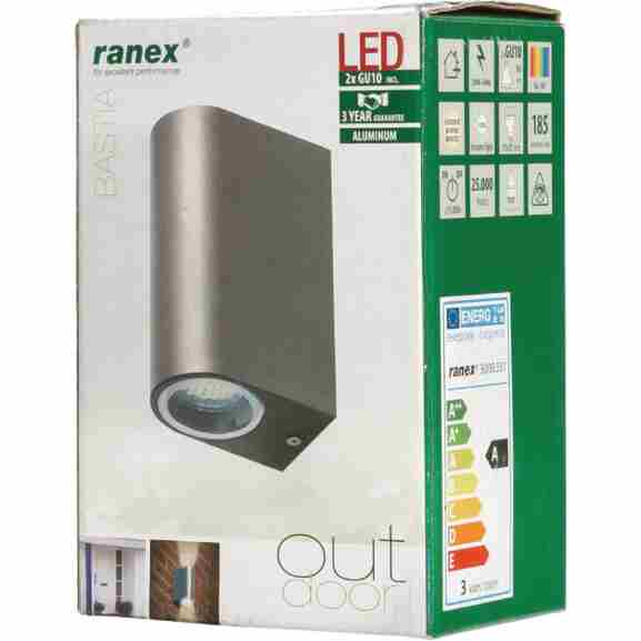 Ranex Ra-5000331 Led Buitenwandlamp Van Roestvrijstaal Met Twee Lichtpunten