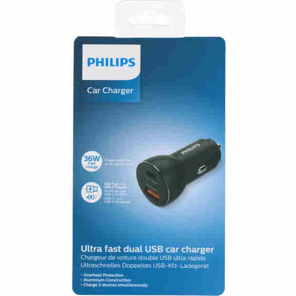 Ben jij de baas over de muziek in de auto? Of gebruik je regelmatig maps op je iPhone om de weg te navigeren? Dan zul je merken dat de batterij van je telefoon soms vrij snel leeg kan gaan. Gelukkig zorg je er met de Philips DLP2521/03 auto oplader voor dat je nooit zomaar zonder batterij komt te zitten wanneer je deze het hardst nodig hebt. De autolader heeft een USB-A en een USB-C output waarmee je niet alleen je telefoon, maar ook een tablet, smartwatch, draadloze oortjes en koptelefoon op kunt laden.