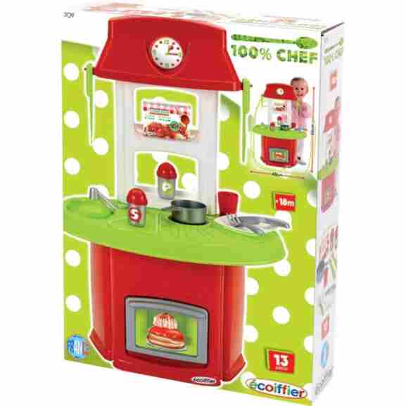 Ecoiffier 100% Chef keuken met 12 accessoires. Geschikt voor kinderen vanaf 18 maanden.