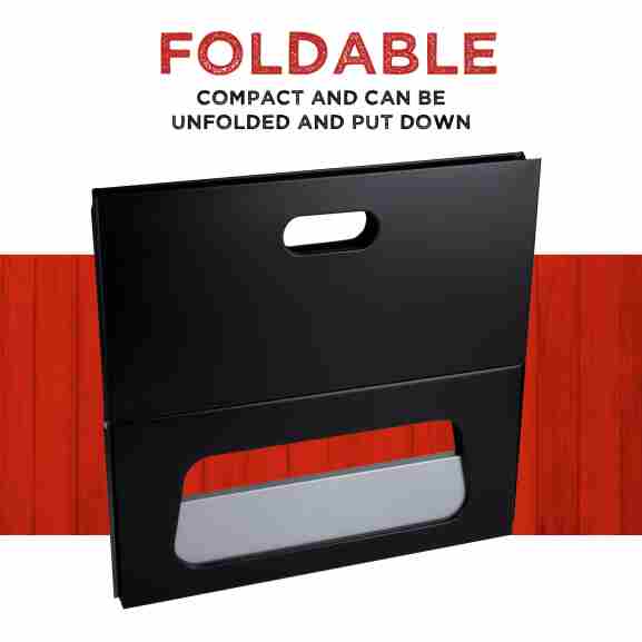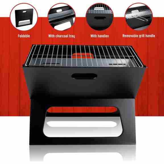 De barbecue valt op door zijn hippe zwarte design. Deze speciale driehoekige vormgeving maakt dat hij ook stevig op zijn poten staat. Dat is natuurlijk altijd fijn als je met vuur en voedsel te maken hebt. De tafelbarbecue is voorzien van een uitneembare vuurschaal waarin je houtskool of briketten legt. Het roestvrijstalen rooster is voorzien van afneembare grepen zodat je je handen niet kunt branden. Het uitklappen gaat razend snel en hij is ook zo weer opgevouwen.