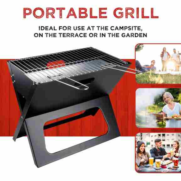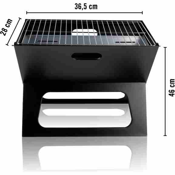 Lekker barbecueën kan overal. De draagbare barbecue van BBQ Collection neem je gemakkelijk met je mee. De BBQ is op te klappen als plat pakket met praktische handvaten. De houtshool barbecue is 46 centimeter hoog, 36,5 centimeter breed en 28 centimeter diep. Daar kun je dus best veel hamburgers, worstjes, vis, groenten en ander lekkers op kwijt.